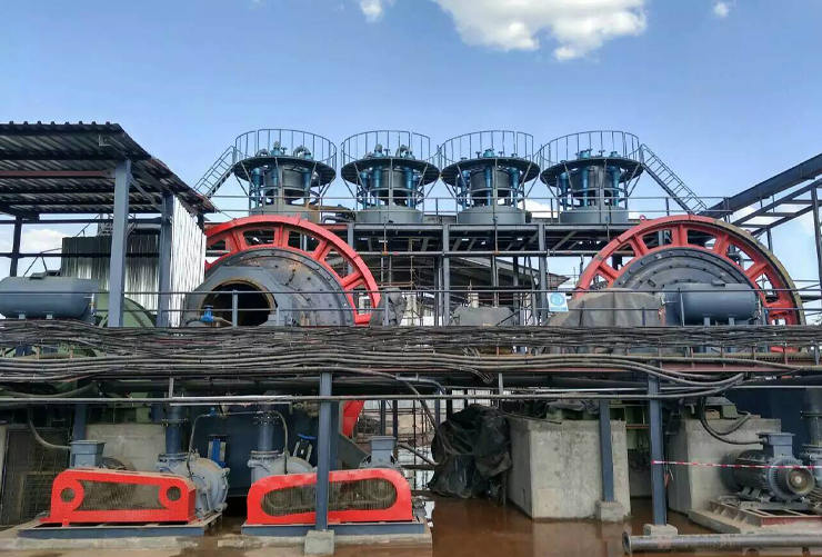 棒磨機(jī)由電機(jī)通過(guò)減速機(jī)及周邊大齒輪減速傳動(dòng)或由低速同步電機(jī)直接通棒磨機(jī)過(guò)周邊大齒輪減速傳動(dòng),驅(qū)動(dòng)筒體回轉(zhuǎn)。筒體內(nèi)裝有適當(dāng)?shù)哪サV介質(zhì)-鋼棒。磨礦介質(zhì)在離心力和摩擦力的作用下,被提升到一定高度,呈拋落或斜落狀態(tài)落下。被磨制的物料由給礦口連續(xù)的進(jìn)入筒體內(nèi)部,被運(yùn)動(dòng)的磨礦介質(zhì)所粉碎,并通過(guò)溢流和連續(xù)給礦的力量將產(chǎn)品排出機(jī)外,以進(jìn)行下一段工序作業(yè)。