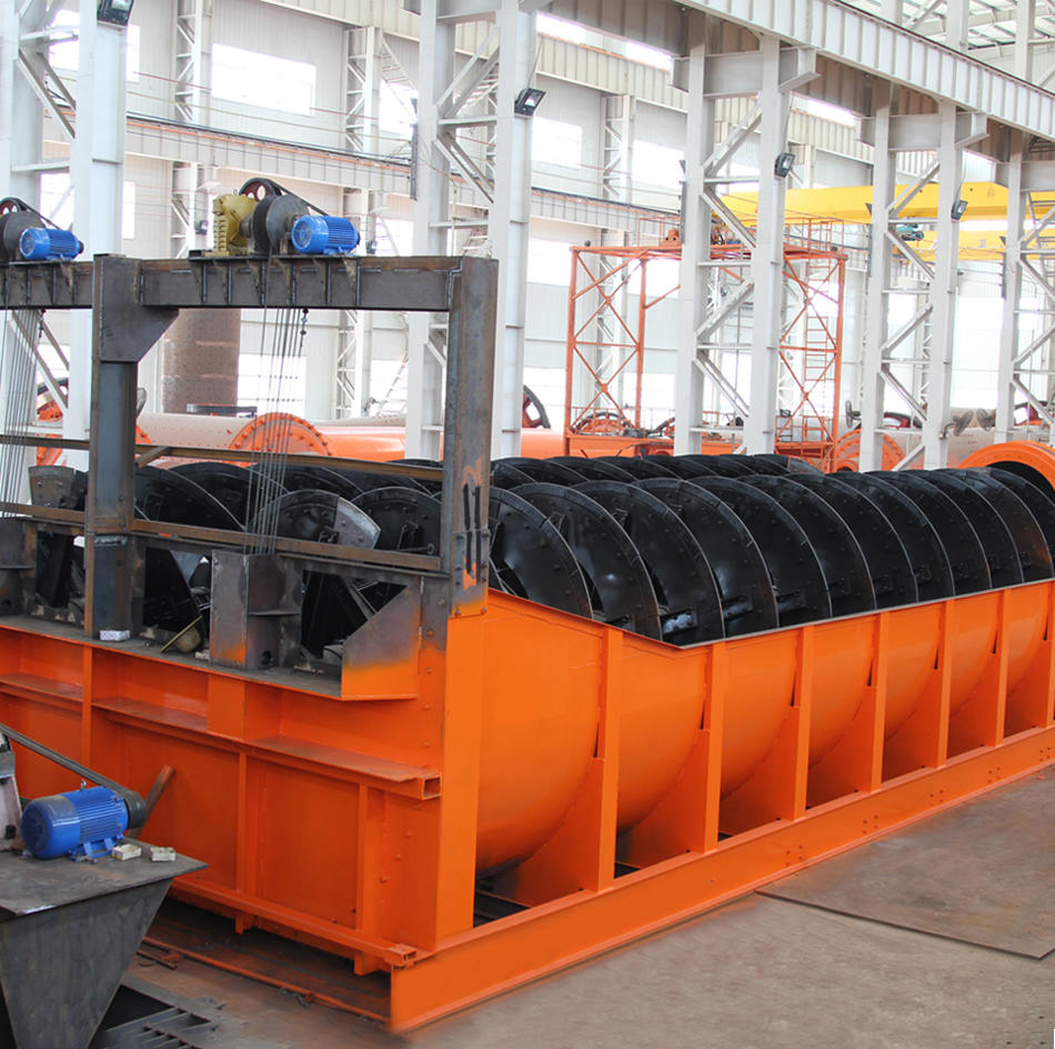 螺旋分級機在選礦作業(yè)中與球磨機配成閉路循環(huán)流程,將合乎粒度 大小要求的礦物作為成品從溢流端排放到下端工序,將粗砂送回球 磨機中再磨。