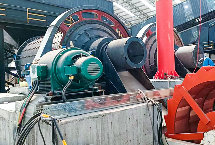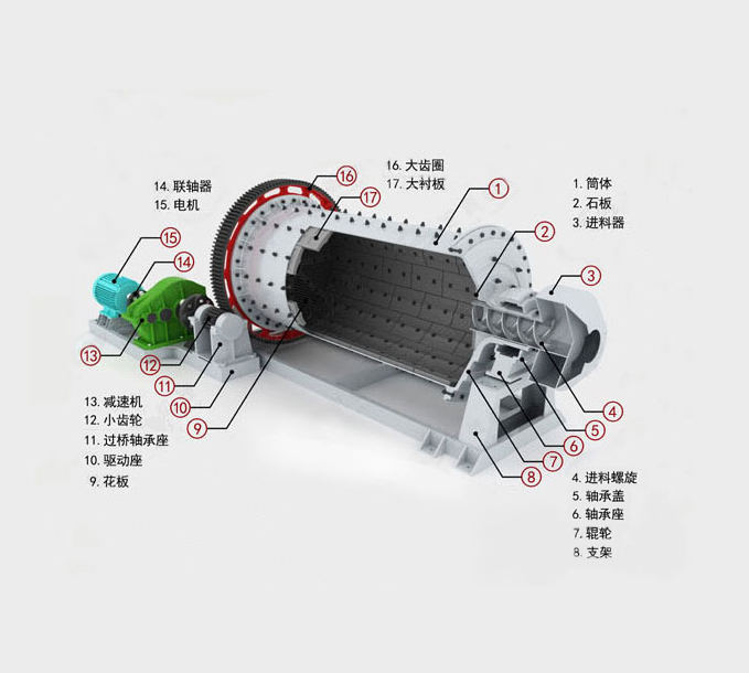 球磨機(jī)由給料部、出料部、回轉(zhuǎn)部、傳動部(減速機(jī)、小傳動齒輪、電機(jī)、電控)等主要部分組成。中空軸采用鑄鋼件,內(nèi)襯可拆換,回轉(zhuǎn)大齒輪采用鑄件滾齒加工,筒體內(nèi)鑲有耐磨襯板,具有良好的耐磨性,本機(jī)運(yùn)轉(zhuǎn)平穩(wěn),性能可靠,根據(jù)物料及排礦方式,可選擇干式球磨機(jī)和濕式球磨機(jī)。